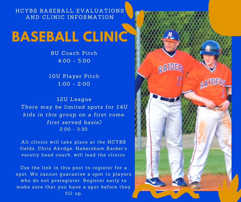 The Habersham County Youth Baseball and Softball preseason clinic is open at no cost to anyone registered to play in their spring program this year. Coach Akridge, Raider Baseball Varsity Head Coach, will be leading the clinic along with some of the Raider baseball players and the program’s volunteer coaches. Each clinic will be held on the player evaluation day, either immediately before or after the evaluation times.