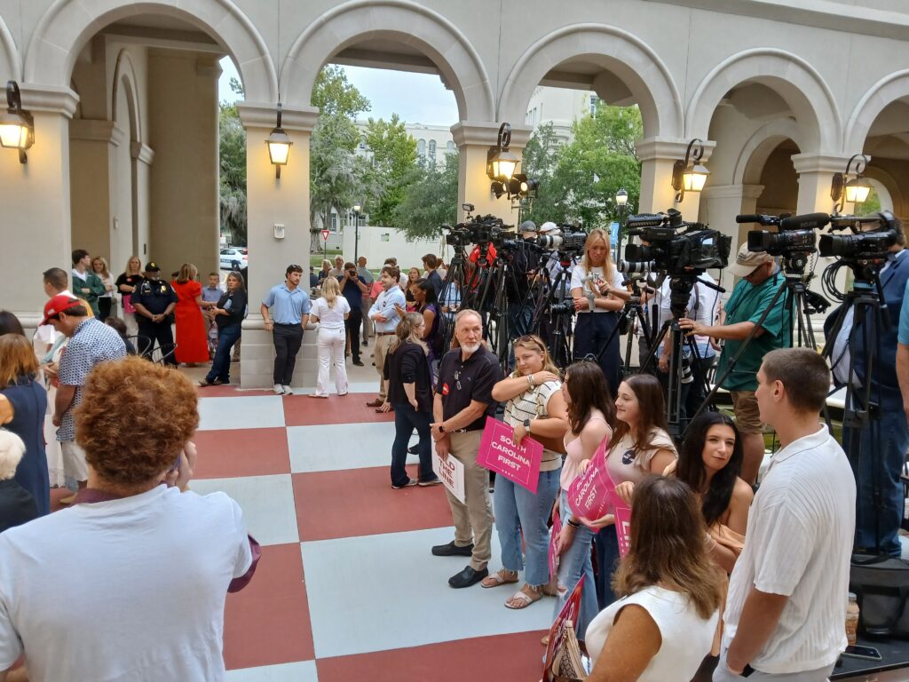 “They said stay quiet. I spoke up. They said sit down. I stood up. They said play nice, and I fought back,” Mace told about 100 supporters gathered in the courtyard of Capers Hall at the state’s military college.