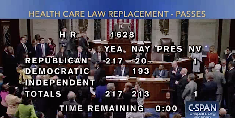 Republicans in the U.S. House or Representatives today mustered the votes needed to pass H.R. 1628, the American Health Care Act (AHCA). The hotly contested measure passed by a four vote margin – 217 to 213 – with no Democratic support and 20 Republicans voting against it.