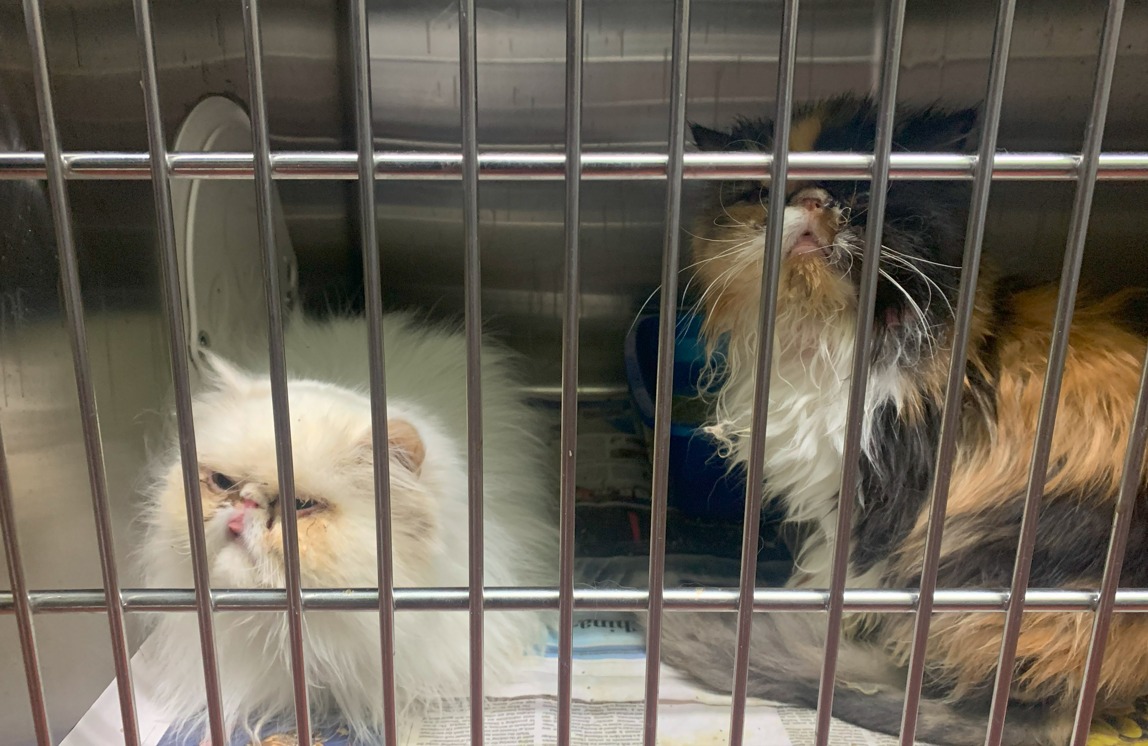 The animals suffered varying degrees of neglect. The Humane Society’s medical team is treating them for illness and infection. Most of the cats have upper respiratory infections. Two cats, which were pregnant when rescued, are in foster care until they give birth. All of the animals are receiving preventative treatment and will be spayed or neutered before becoming available for adoption.