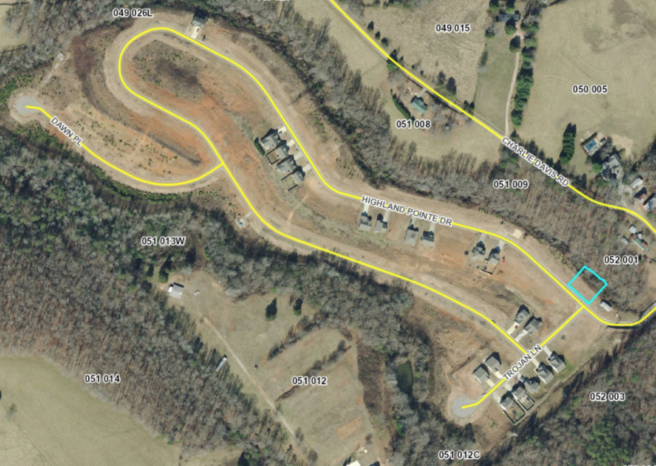 Highland Pointe subdivision is located off Charlie Davis Road near GA 365. It was platted out in the early 2000s. According to the Tax Assessor’s map, there are approximately 157 parcels within the subdivision.