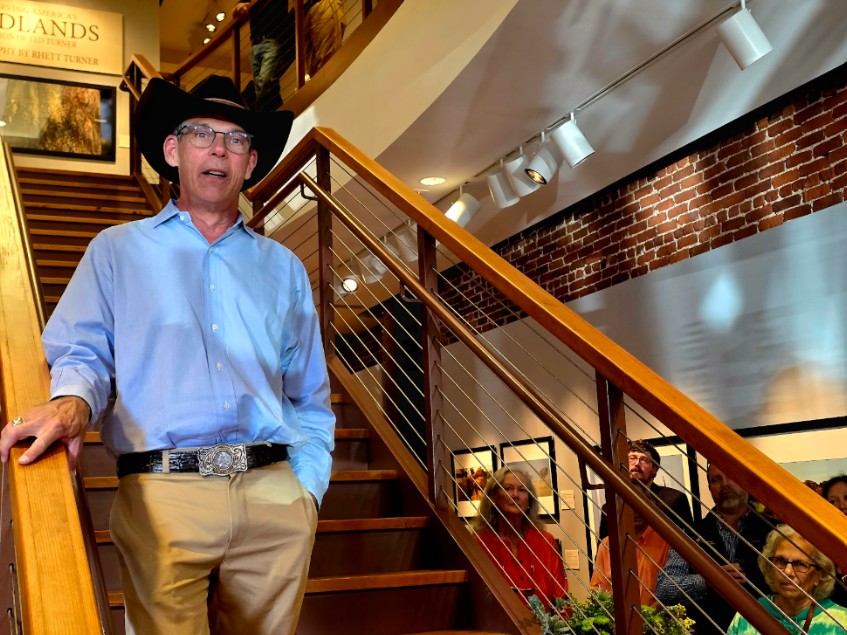DEMOREST, Ga. — Photographer and conservationist Rhett Turner climbed the stairs of Piedmont University’s Mason-Scharfenstein Museum of Art to open his new exhibit, “Conserving America’s Wildlands: The Vision of Ted Turner.” A crowd of more than a hundred students, trustees, and community members filled the gallery Thursday evening to hear him speak about the photographs and the conservation legacy he shares with his father.