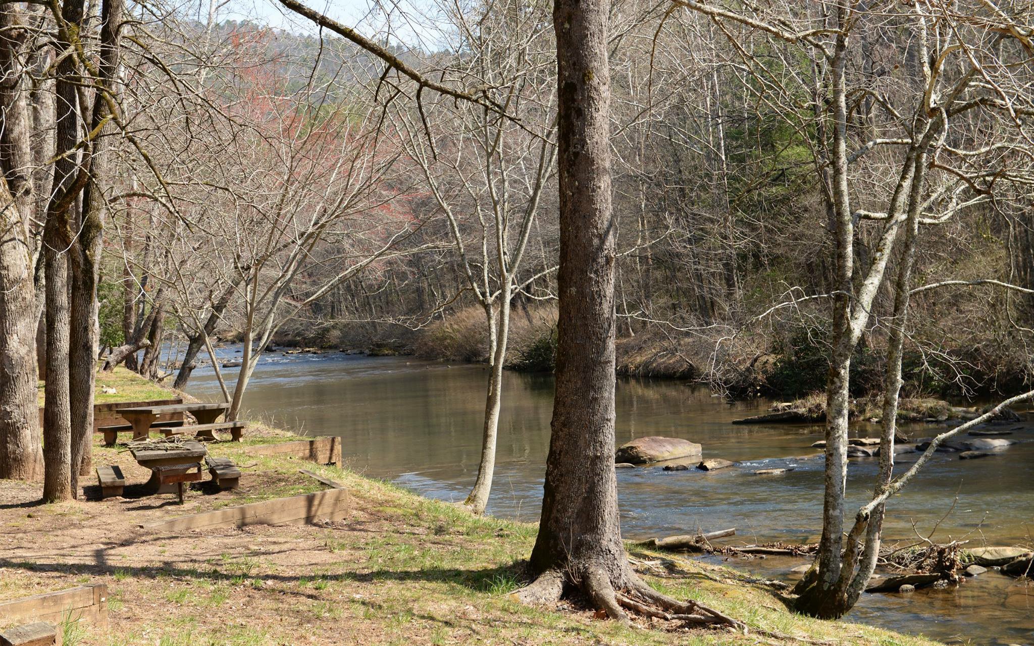 Well, wonder no more. After an extensive redevelopment, the property is now open to the public. A new water feature at the entrance highlights the new name, River Falls at the Gorge. The property, which features acres and acres of forested land nestled among a beautiful curve of the Tallulah River, began in 1964 as a KOA campground. In the early 1980’s, the campground was turned into a resort. A small hotel, retaurant and cabins dotted the property. In 1999 the resort was sold to a group that turned the property into a membership supported private resort. After the economic downturn that began in 2008, the resort struggled and finally fell into foreclosure. A campground development group from South Carolina was contacted. The development group was impressed with the property which is bounded on three sides by the river. The access to the River alone begged attention. The area draws people year round and the topography offered a myraid of opportunites.
