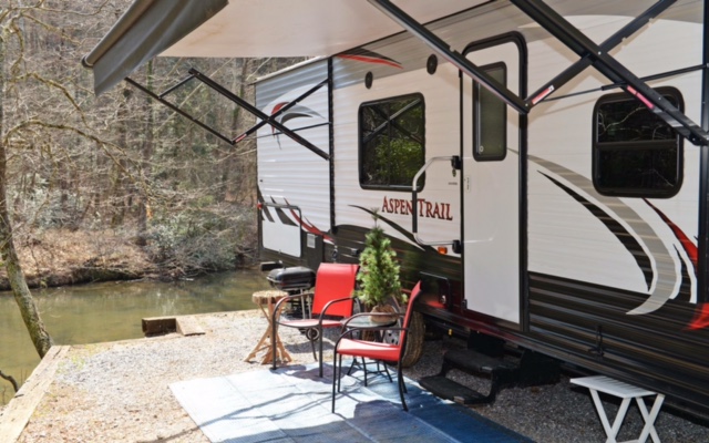The resort is now home to an event facility perfect for weddings and reunions. An indoor pool and an outdoor pool guarantee year-round fun. Campsites for traditional tent camping and RV camping have been cleared and refurbished. Showers and restroom facilites are easily accessible. Treehouses are also planned for future development. If you do not have an RV, you may rent a new RV, fully furnished, for a modest fee from River Falls. If camping doesn’t float your boat, two bedroom cabins with rocking chair porches, hot tubs and kitchens are available.