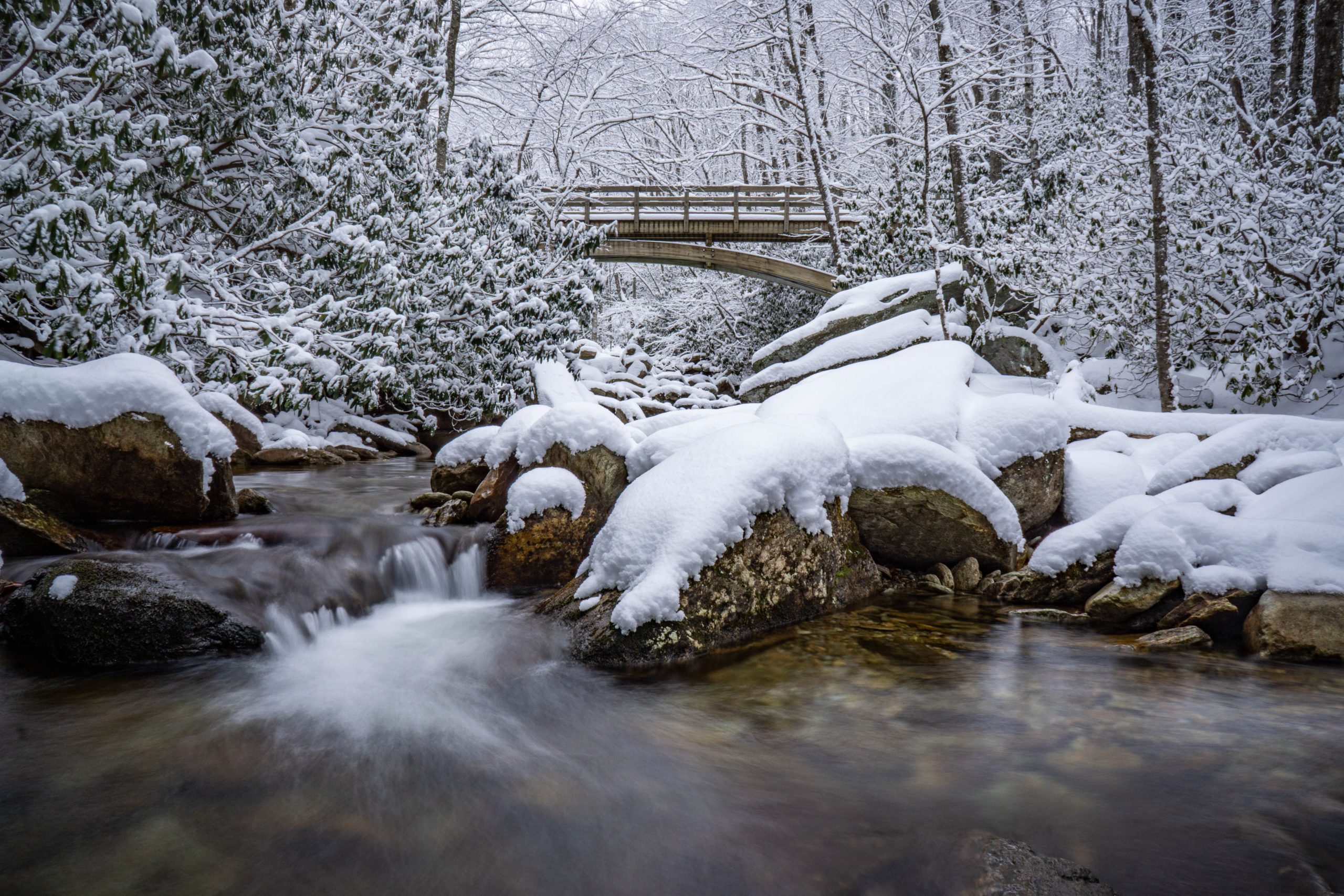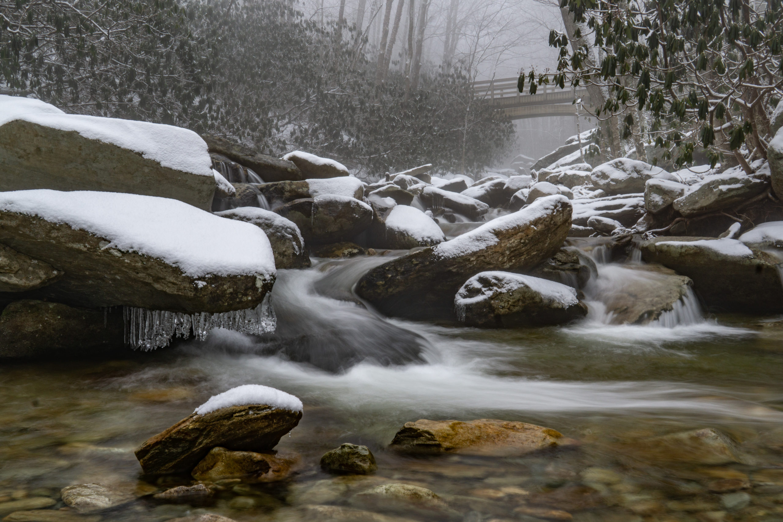 I have on many occasions stopped by the woods on a snowy evening, for no reason other than to watch the snow fall. There is just something so peaceful and calming about falling snow that no other weather can match. Now, in this sweltering summer heat, those memories and these photos remind me of cooler, quieter days.