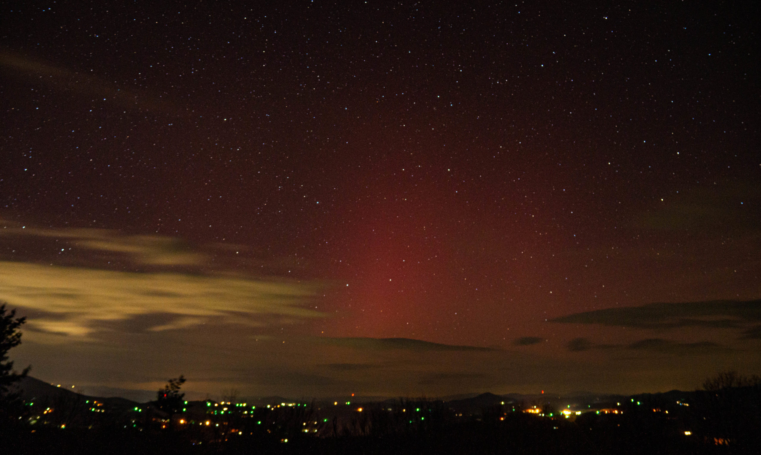 I found myself in northwest North Carolina on the Blue Ridge Parkway, a place I am all too familiar with. Just north of the town of Boone is one of the better overlooks to see the northern lights when they briefly become southern ones. It points due north and has some, but not much, light pollution.