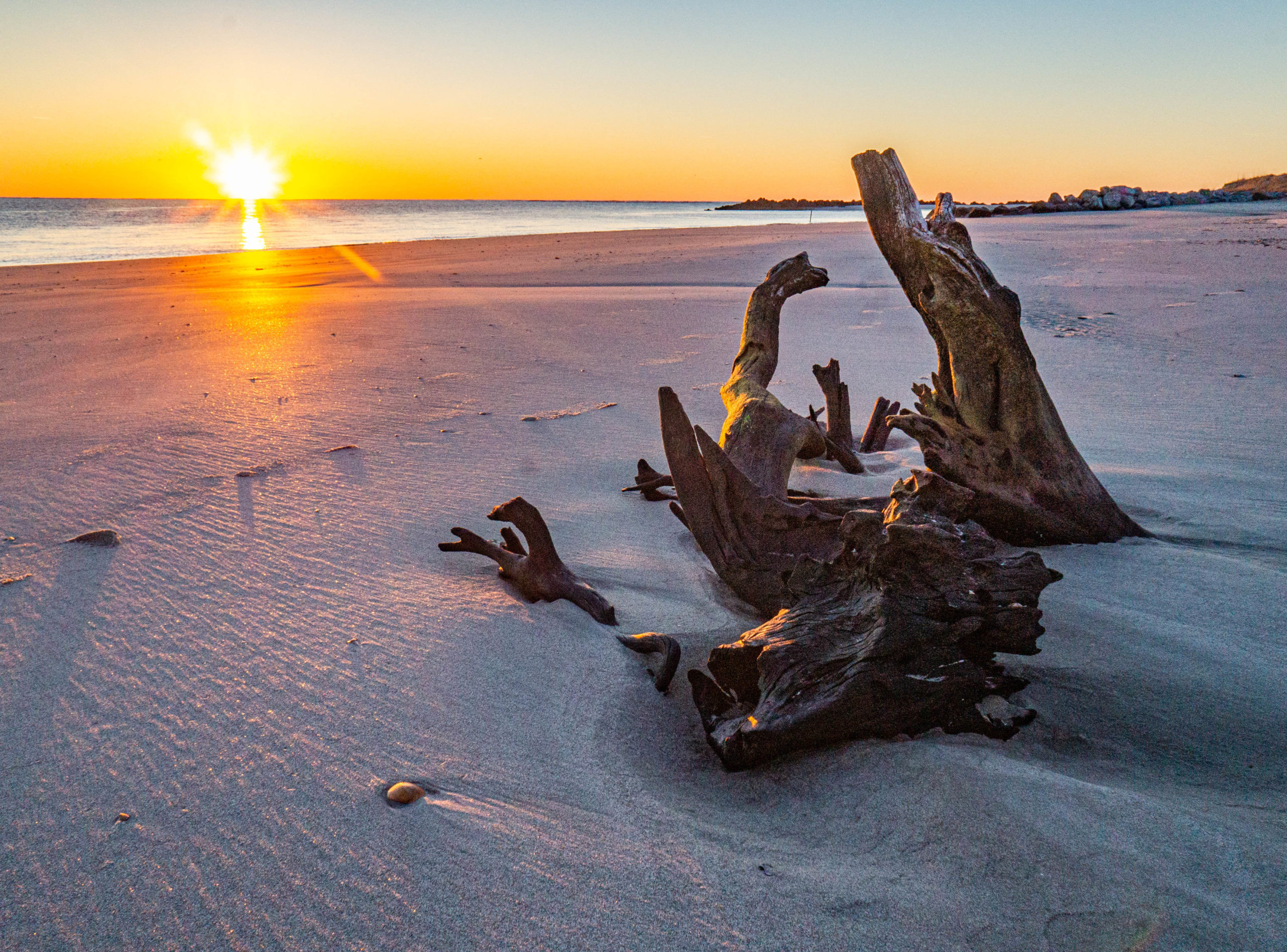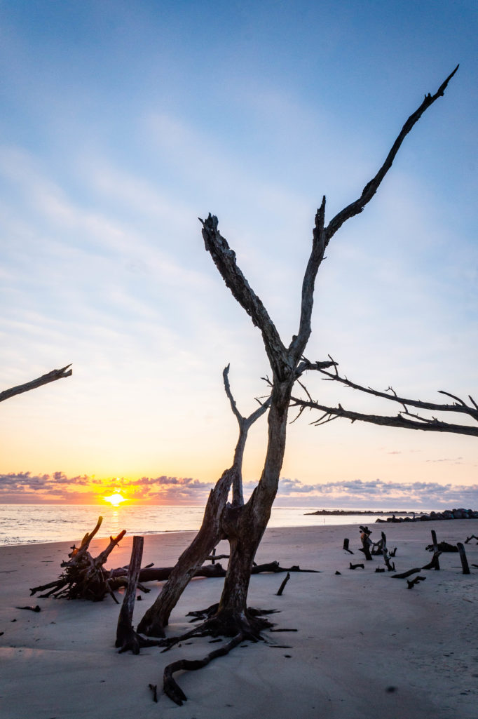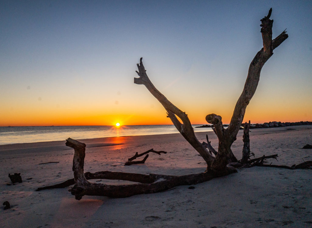 But it doesn’t take clouds to make a good sunrise. This morning there wasn’t a cloud in the sky. It was a crisp, clear 45 degree morning as the sun broke the horizon on some beautiful driftwood on the coast of Folly Beach.