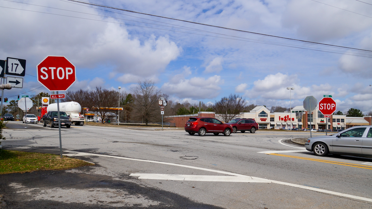 GDOT’s current plan for the roundabout takes those concerns into consideration, with roundabout entrances and exits going between businesses like Stoney’s and the gas station at the intersection. The current roads at that intersection would stay where they are to become entrance and exit points for the roundabout.