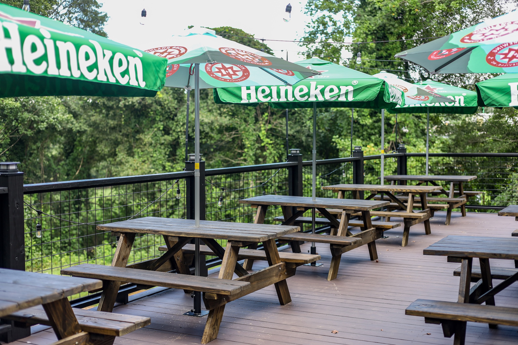 In addition to the interior renovations, the exterior changes have created a new gathering spot in Clarkesville. The new owners built a deck and outdoor fire pits and cleared a number of trees to open the back lawn up to a view of Rocky Branch near the Soque River Greenway Trail. They plan to offer cornhole and other activities and envision Rustic Cabin and its grounds as a place where people can “hang out,” perhaps walk their dogs while “enjoying a beer or two.”