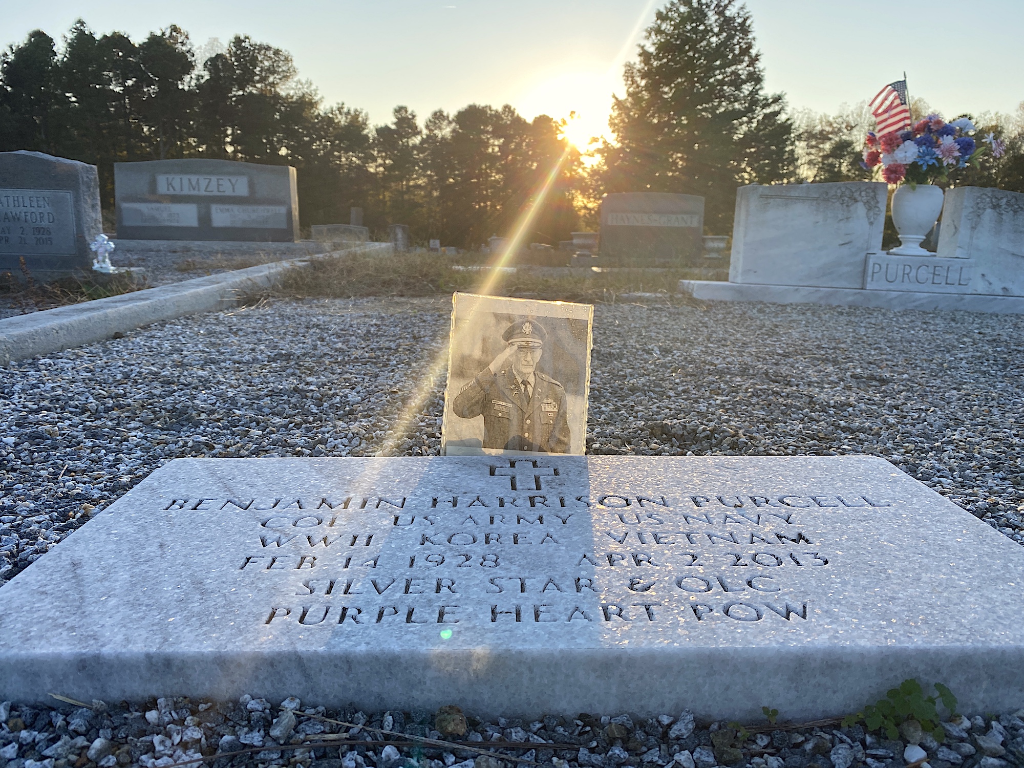 We haven’t a clue as to when the photo was placed there or by whom; clearly, it had been rained on. Did it weather Zeta’s torrential rains and 50 mph winds or did someone come after the storm to spend a moment with Dad and leave a keepsake?