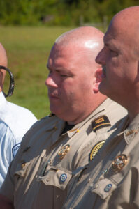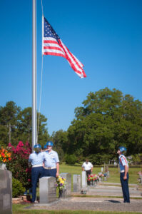 Members of law enforcement, firefighters, and first responders were front and center while WoodmenLife Representatives conducted the ceremonies, with the welcoming remarks made by Kenneth McEntire. After the invocation was given by US Air Force veteran Reverend Michael Cochran, Todd Wiley spoke of honoring and remembering in dedicating the flagpole and flag. The Habersham Central Junior ROTC cadets proudly performed the Raising of The Flag ceremony, after which Ricky Pruitt led those gathered in the Pledge of Allegiance.