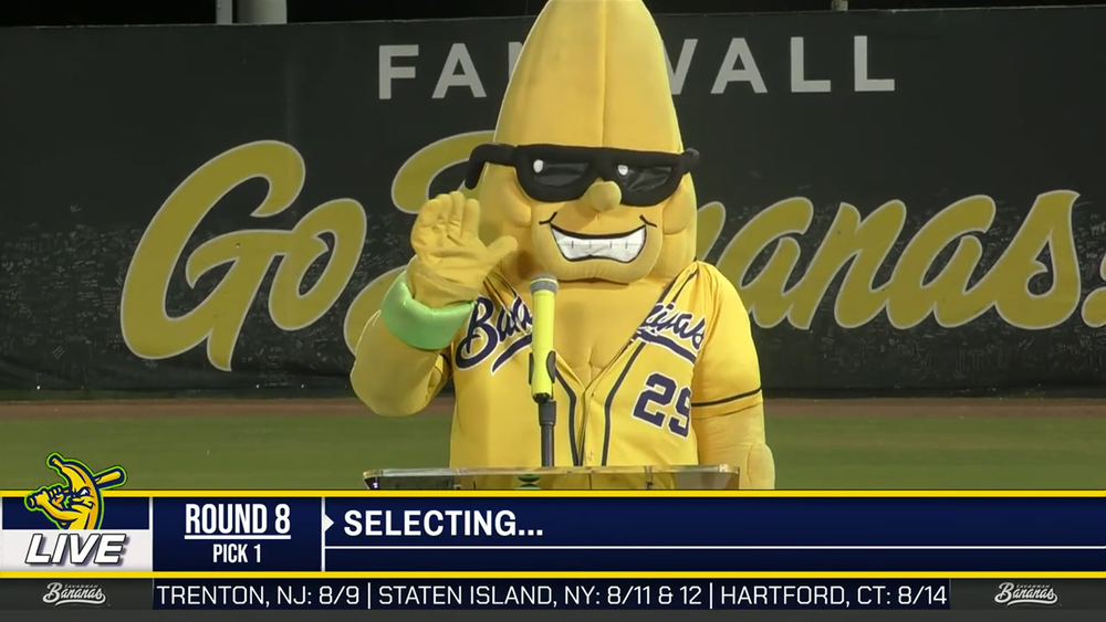 Also taking to the podium, albeit silently, was Bananas mascot “Split,” who held up a sign declaring Milwaukee as a late-summer destination.