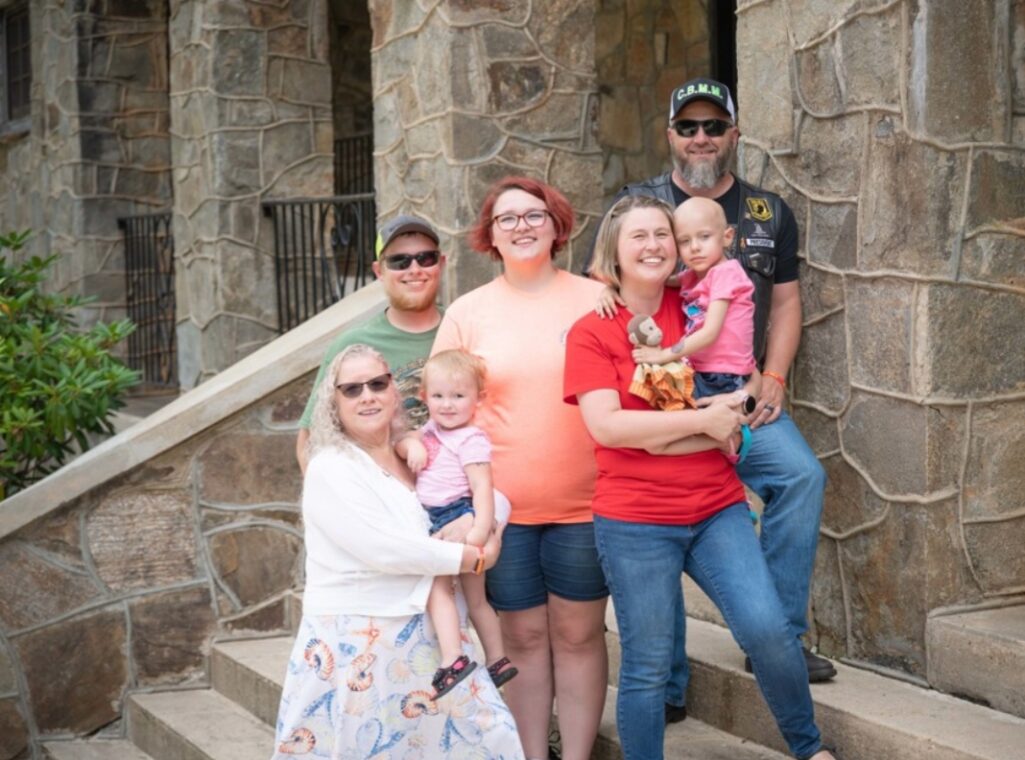 Scarlett with her family. Pictured left to right are grandmother Sheila Atkins, sister Annabel, dad Preston LaCount, mom Katie LaCount, and grandparents Heather and Johnny Johnson.