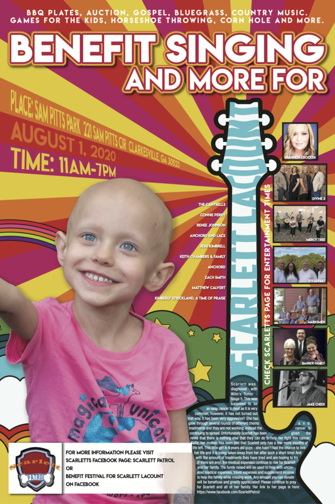 Organizers planned the outdoor event to allow for social distancing. For those who can’t attend but still want to help, there is a GoFundMe account set up in Scarlett’s name.