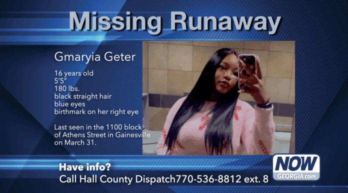 The Hall County Sheriff’s Office says Gmaryia Geter, 16, was last seen by relatives around 4 p.m. in the 1100 block of Athens Street.