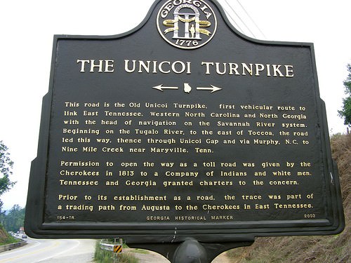 The Unicoi Turnpike was the first vehicular route to link East Tennessee, Western North Carolina, and North Georgia with the head of navigation on the Savannah River System.