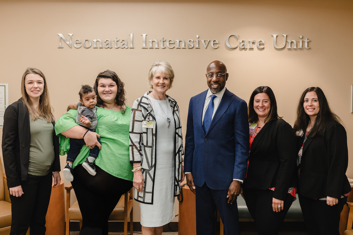Warnock visited the Gainesville campus of Northeast Georgia Medical Center (NGMC). During his visit, toured the hospital’s neonatal intensive care unit (NICU) and took part in a roundtable discussion with Northeast Georgia Health System leaders.
