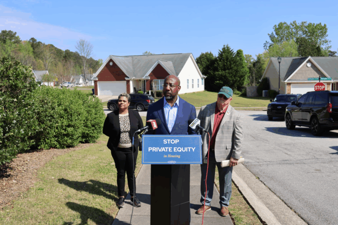 “Private equity and major corporations have been buying up thousands of single-family homes that should be available for Georgians who want to purchase a piece of the American dream,” according to Senator Warnock.