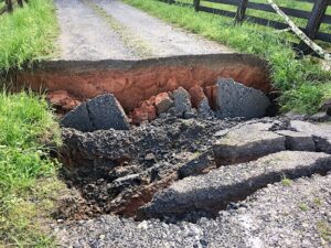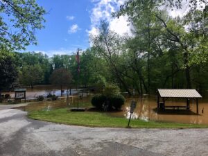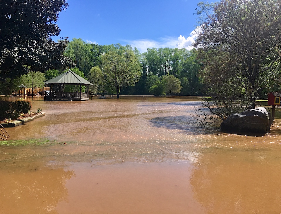 A large part of the walking trail at the Clarkesville Greenway was submerged by floodwaters Friday.A section of this drive off of Alec Mountain Road crumbled into the creek below. By mid-afternoon on April 19 the Soque River overran its banks and flooded Pitts Park. (Now Habersham)Good Friday marked the third time since December the City of Clarkesville has had to close Pitts Park due to flooding. (Now Habersham)
