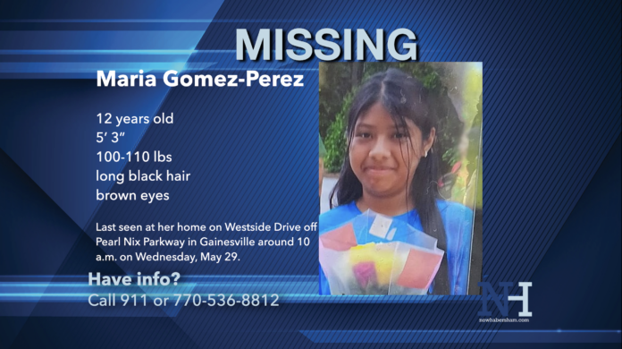 The Hall County Sheriff’s Office says Maria Gomez-Perez was last seen around 10 a.m. on Wednesday, May 29 at her home on Westside Drive off Pearl Nix Parkway.