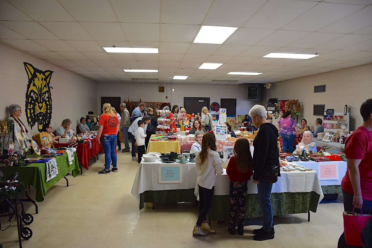 Shoppers check out the tables loaded with arts and crafts and merchandise at the Habersham County Senior Center Christmas Bazaar in Demorest. The two-day event ended Saturday afternoon, Nov. 18, 2023. (Jerry Neace/NowHabersham.com)