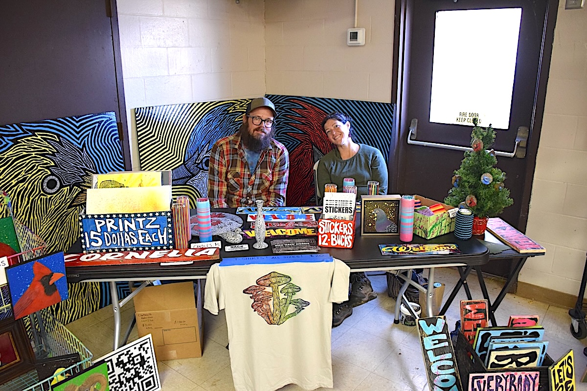 Santa stopped by for selfies (Jerry Neace/NowHabersham.com)Vendors had plenty of room to spread out and show their wares inside the newly-renovated historic elementary school. (Jerry Neace/NowHabersham.com)Local artist Nick ‘Nack’ Morris and his wife, Amanda, were among the vendors selling their creative work at the Christmas Bazaar. (Jerry Neace/NowHabersham.com)
