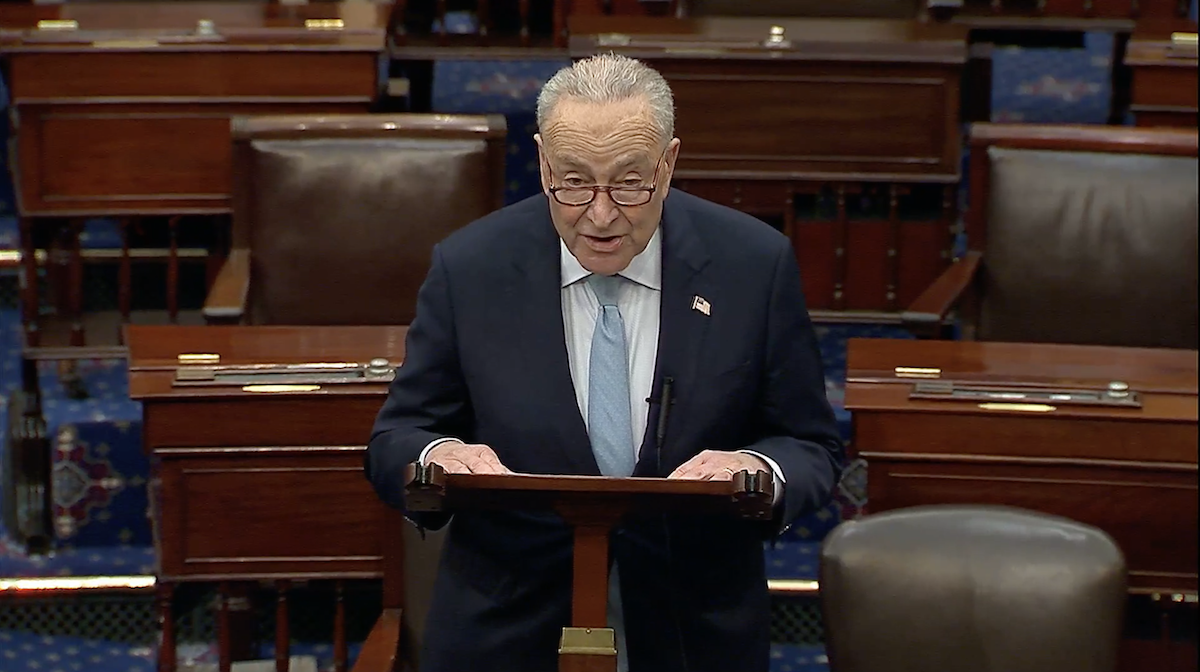 Senate Minority Leader Chuck Schumer, D-N.Y., speaks on the Senate floor at the U.S. Capitol on March 12, 2025, in Washington, D.C. (livestream image)