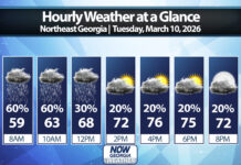 Elsewhere, Thomaston reported 1.6″ with Barnesville reporting 1.5″.