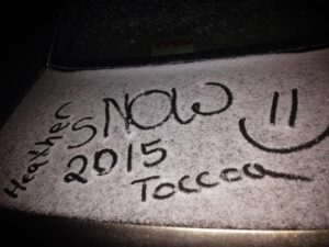 We like the way Angela thinks. This was taken on Pea Ridge Road.This one from Dylan tells the story.Yes, Kayla, we do!Tiffany sent this one from Clarkesville.Our friend Laura from Toccoa shared her snow pix.Sharon captured the moment perfectly.Josh from Hollywood left his mark in the snow.Neighboring counties got snow, too. This is from our friend Heather in Toccoa.Freezie drinks courtesy Debbie.“I wanna make a snow angel,” says Kimberlie in Cornelia.Snow in Toccoa. Thanks Laura.Oh, yes, we do, Kayla!Xan with Friday morning’s forecast. How things change.Crystal obviously looks forward to snow days. Snow in Hollywood. Photo sent by Santana.Tonya says these two couldn’t wait until morning to play in the snow smile in Hollywood.Debi sent this message along with her photo, “Go DAWGS & APP State.” Maria checked in from Alto.Amanda snapped this one around 9pm Friday, Feb 20, in Clarkesville.Megan left her mark in the snow in Cornelia.You’ll never guess who was here?Snow in Hollywood Love letters in the snow from Alex.Watch out! Heather’s driving on Pardue Mill Road.And one of our personal favorites…more love letters in the snow sent in by Brandi. We don’t know her husband’s name but, what a guy!