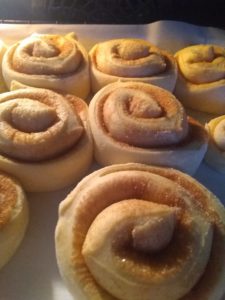 Jennifer whipped up some cinnamon buns and down here in Georgia, while it was raining cats and dogs, I was drooling at her results. I’m sharing this recipe with you because neither rain, sleet, snow, nor hail will keep me from trying these mouthwatering cinnamon buns.