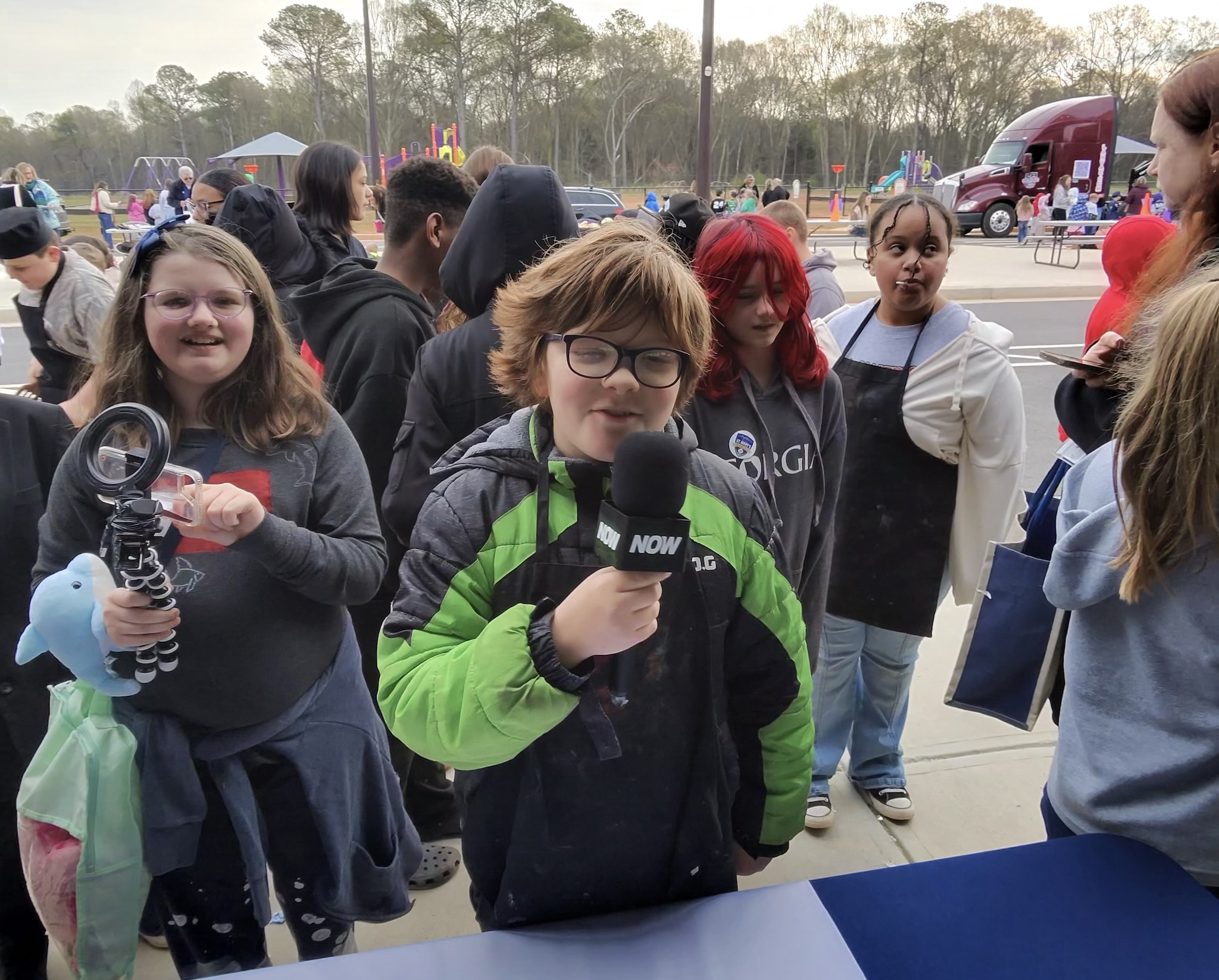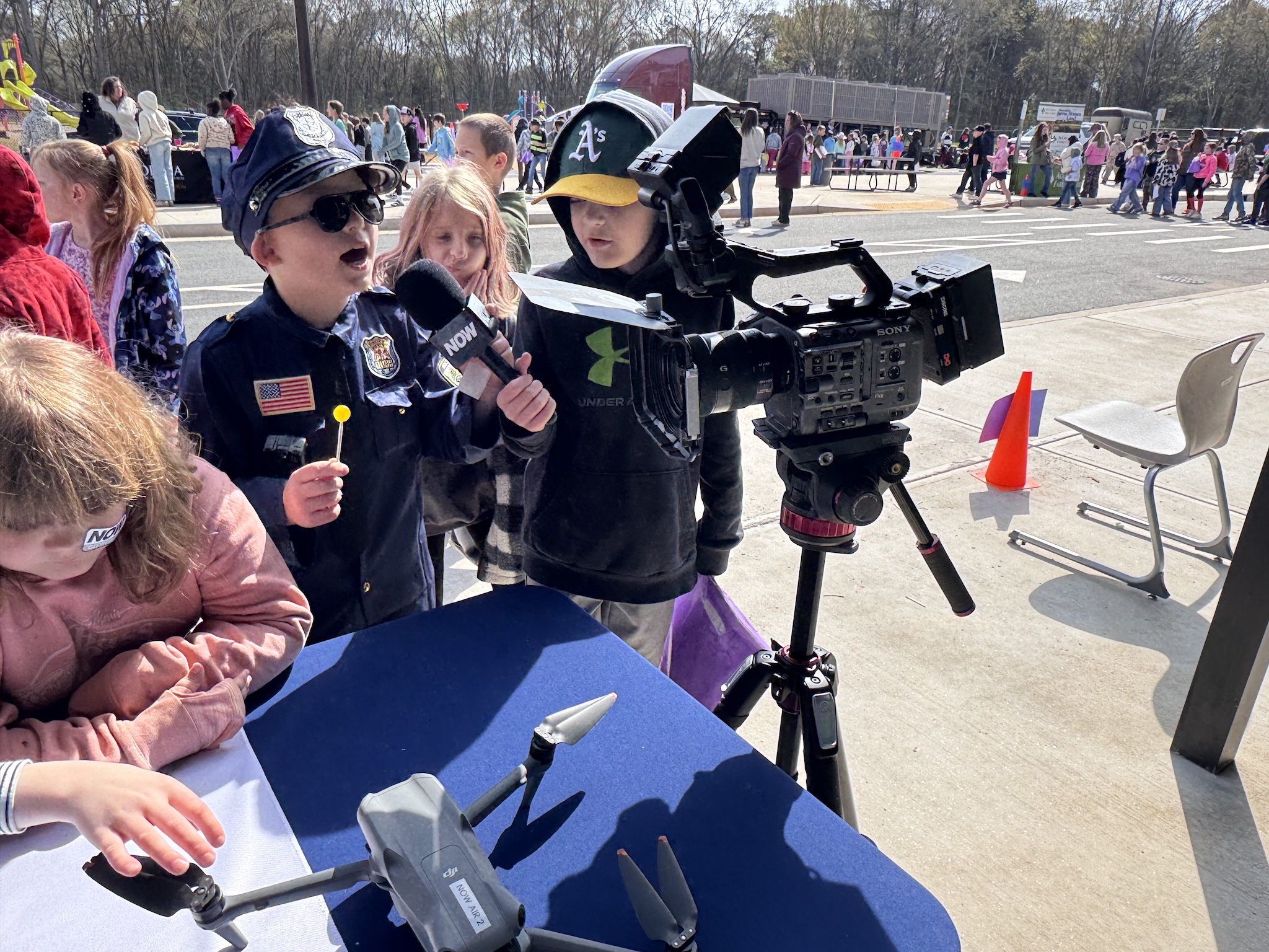 During the three-hour outdoor event, students explored fire trucks and other emergency and service vehicles. They even got the chance to step into the role of a reporter, asking questions and practicing their storytelling.