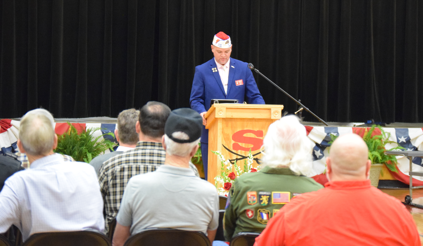 The presentation began with a standing ovation for the veterans in attendance as they filed into the gymnasium. The applause continued as each one filed in and took their seats. Many of the veterans were accompanied by their spouses.