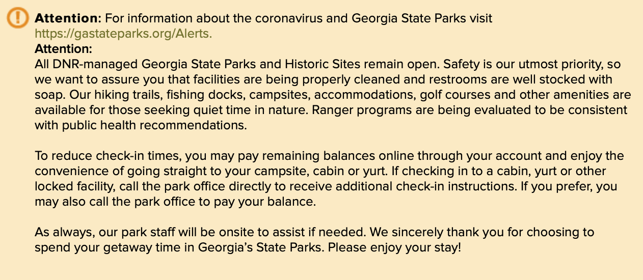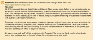 “We, too, enjoy exploring Georgia, but we urge people to stay mindful of social distancing, follow best practices, and avoid large crowds,” they said. They did say park rangers would begin enforcing social distancing and crowd limits on lakes and at campgrounds, but many are still treating such rules as requests.