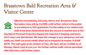 Currently, White County still only has one confirmed case of COVID-19. The Department of Public Health reported the first confirmed case in Banks County on March 30. Habersham, Rabun, Towns, Union, and Elbert counties are the only remaining counties in Northeast Georgia with none. While that most likely will change, people want to hold the virus at bay as long as possible – even if that means holding back the welcome mat.