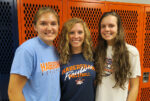 Habersham Central Lady Raiders Volleyball Coach Lindsey Herrin (center) is flanked by two of the team's seven senior players, Alexandra Shalikashvili (left), and Ansley...