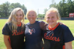 Pictured (l-r): Lady Raiders Paige Cook (SS), Coach Stephanie Thomas, and Adelaide Askew (1B). (photo/BLITZ)