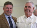 Piedmont College alumni Marvin Hudson, left, and Dock Sisk reminisce about how one simple question launched Hudson's major league career.