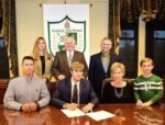 TFS senior Ethen Besier, center, signs his National Letter of Intent to attend Colorado Mesa University in Grand Junction, Colorado to compete in track...