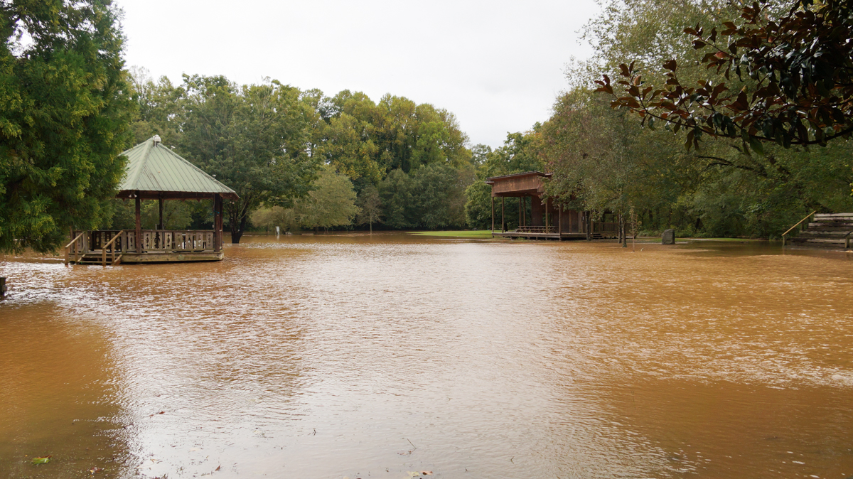 Pitts Park in Clarkesville is underwater. Roads are flooded. After such a beautiful week last week, what’s the reason?