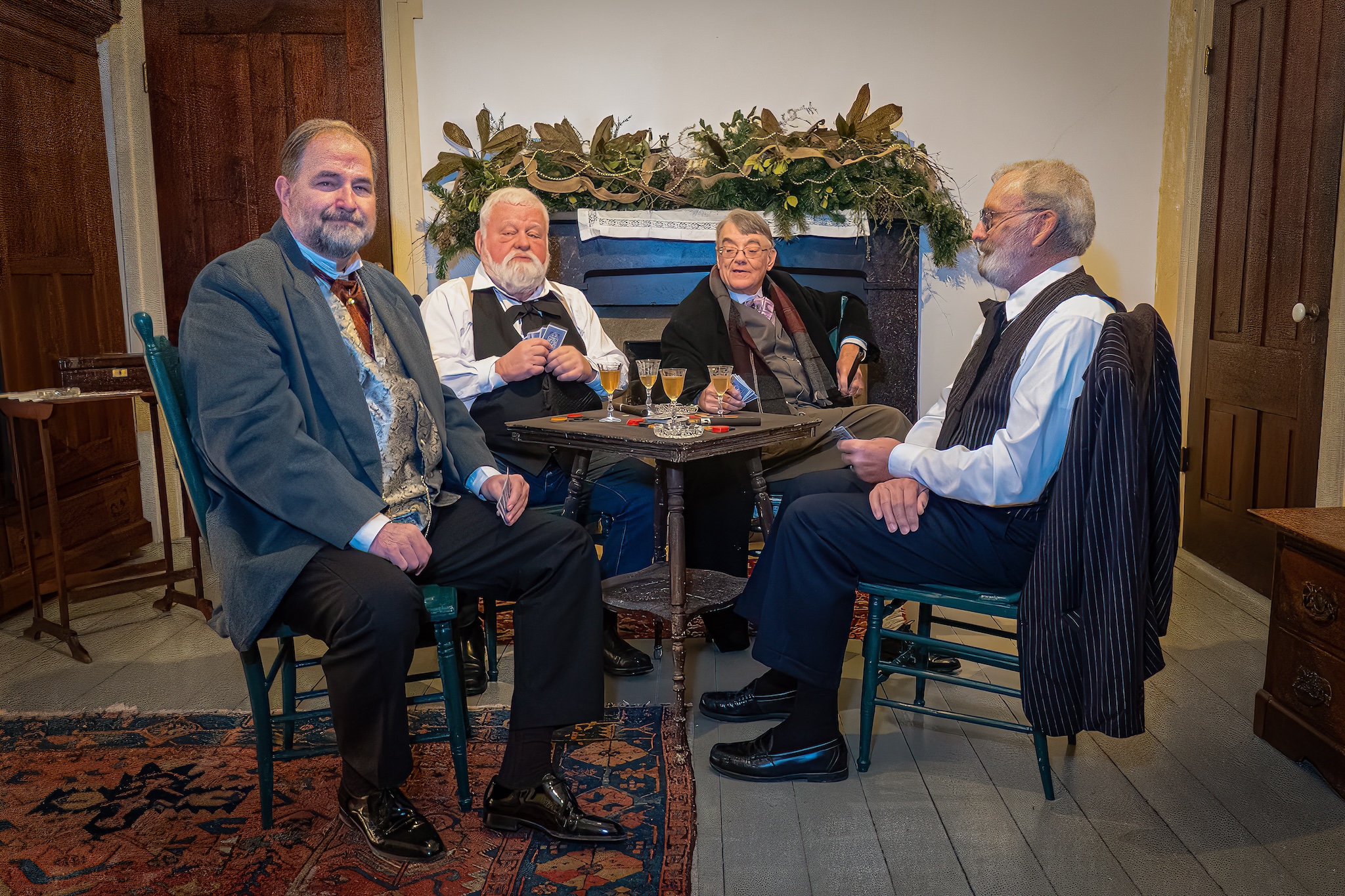 The mansion’s soft glow and seasonal décor create the feeling of being part of a family celebration from another century. Reenactors share stories about holiday customs, from handmade decorations to the songs that shaped Christmas traditions.