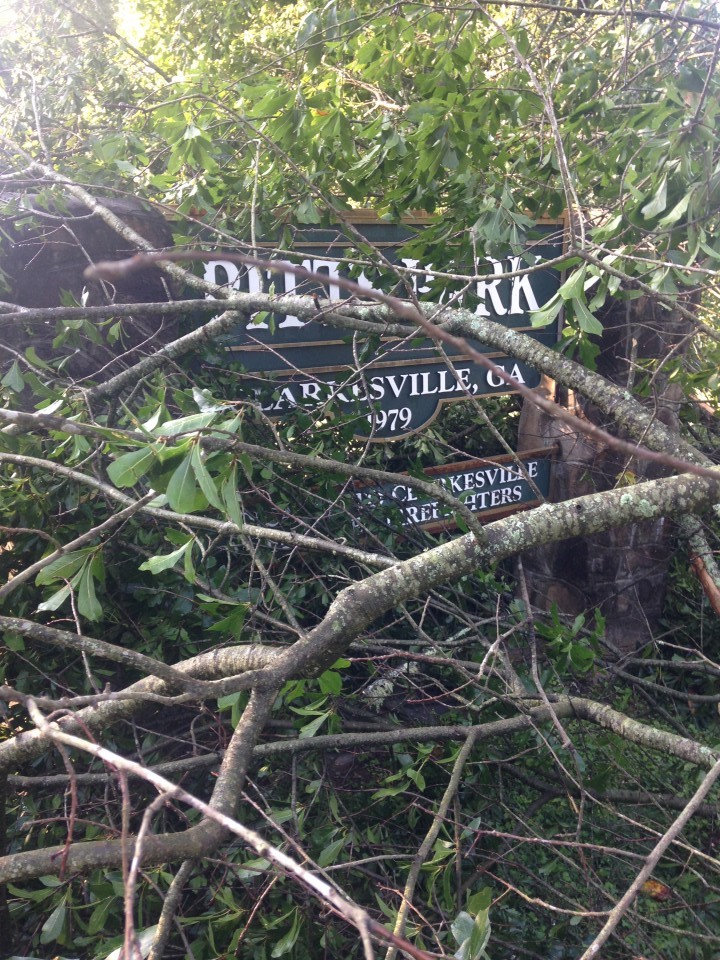 Jeremy Garmon, Clarkesville’s Public Service Superintendent, said his crews have been busy removing a large number of trees from roadways since yesterday afternoon, following the storm. “We haven’t stopped. I haven’t heard of any injuries. It’ll be awhile before we can take care of the downed trees at Pitts Park, though.”