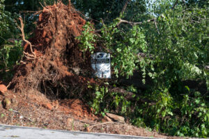 People in Clarkesville and the Fairview Community are now digging their way out from under the damage left by Monday’s storm. A microburst packing 60-70 mph winds cut a swath of destruction from Highway 17 to New Liberty Road. Eyewitnesses called it a tornado but meteorologists say it was a microburst – a sudden, powerful, localized air current – whipped up by a severe thunderstorm and strong, summer cold front.
