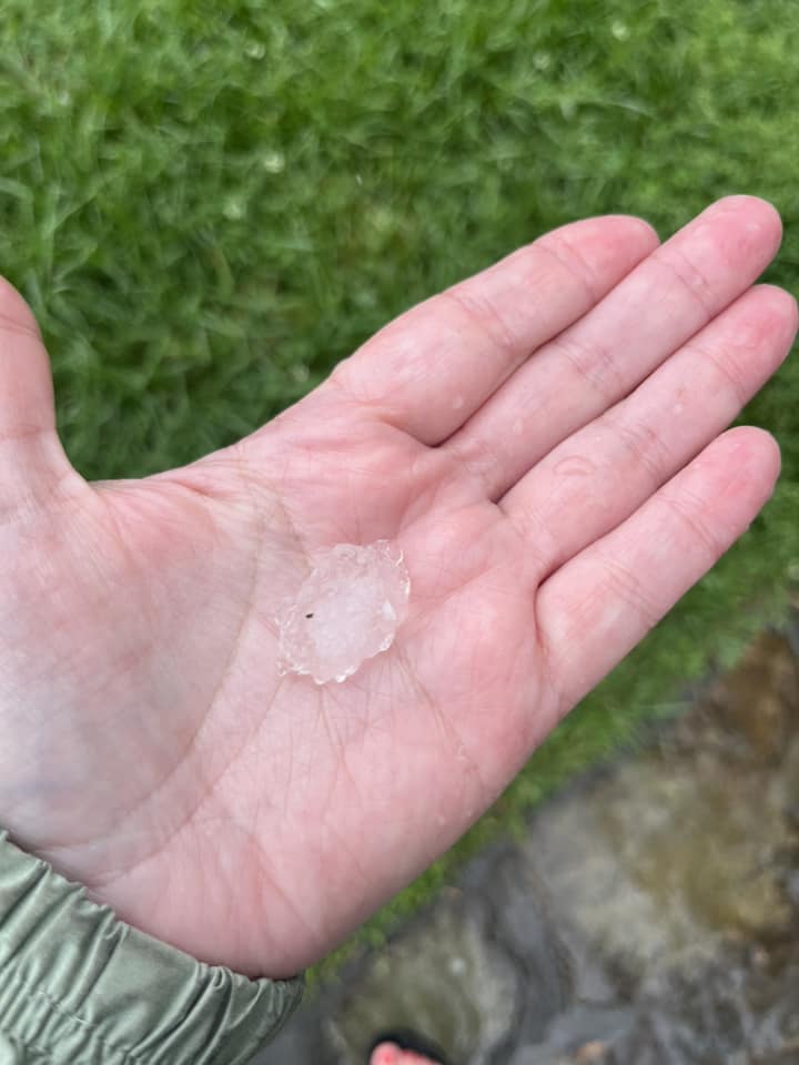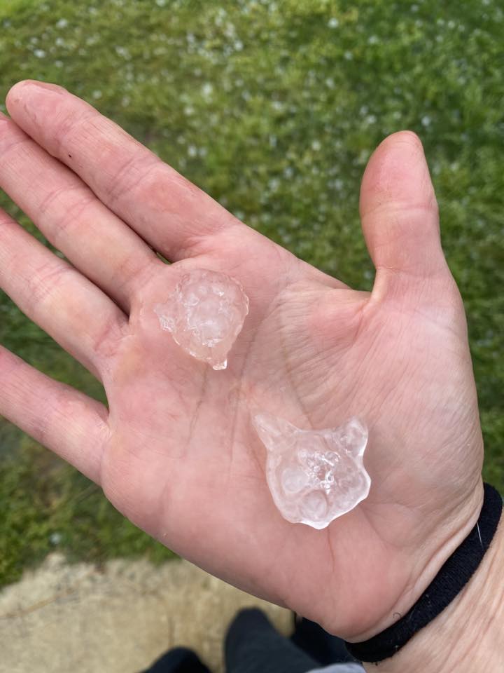 Hail up to near half dollar size was reported in the strongest cell near Mt. Airy, with dime to quarter size hail falling in many other locations.