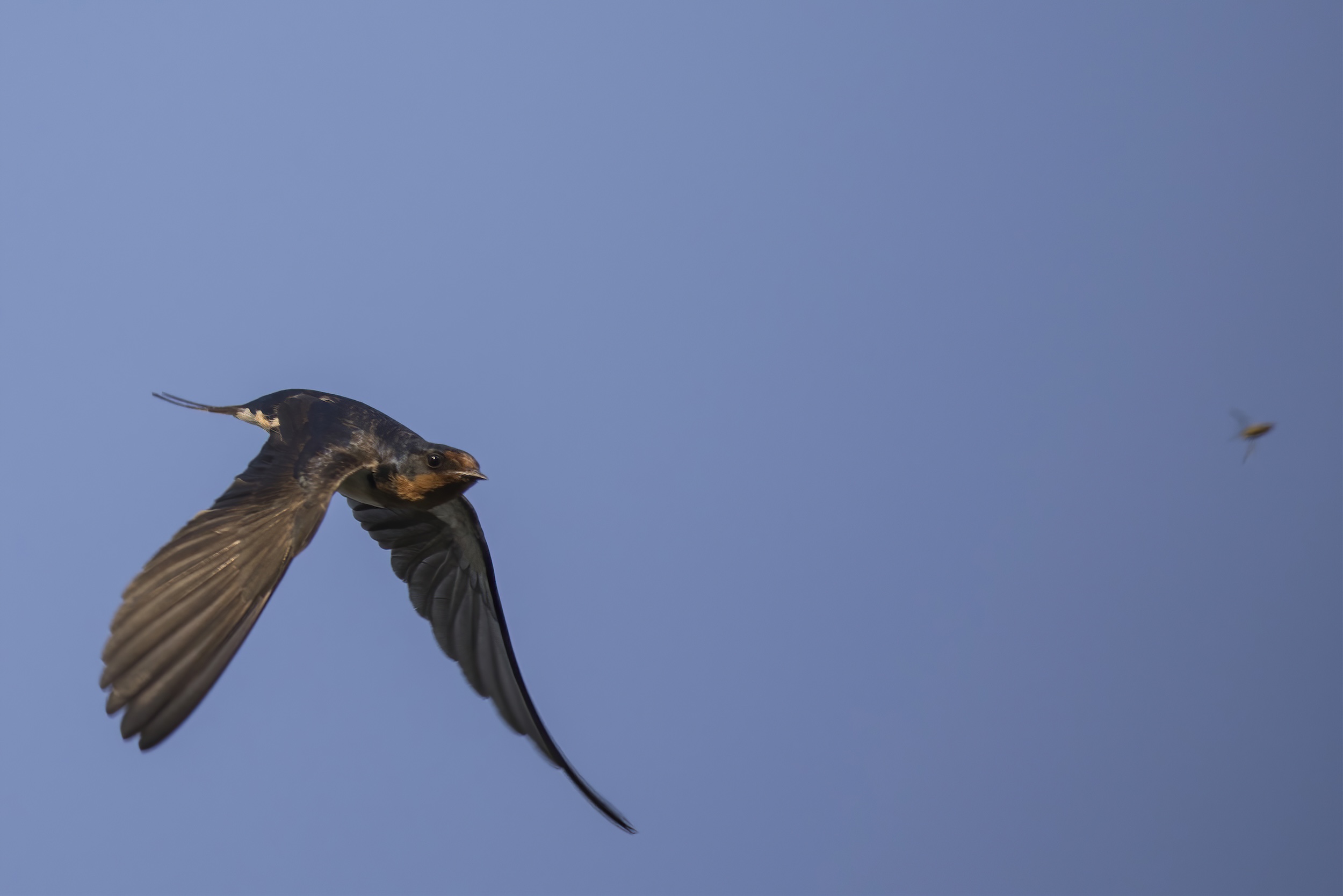 The Barn Swallows fly so fast and seemingly erratic that it is difficult to see their beauty and graceful poise. If you watch one that is perched, its head twitches from one position to another in an instant to observe insects nearby. I imagine that to them, we move as slowly as a sloth does to us. They are more difficult to photograph than dragonflies! I know from experience.