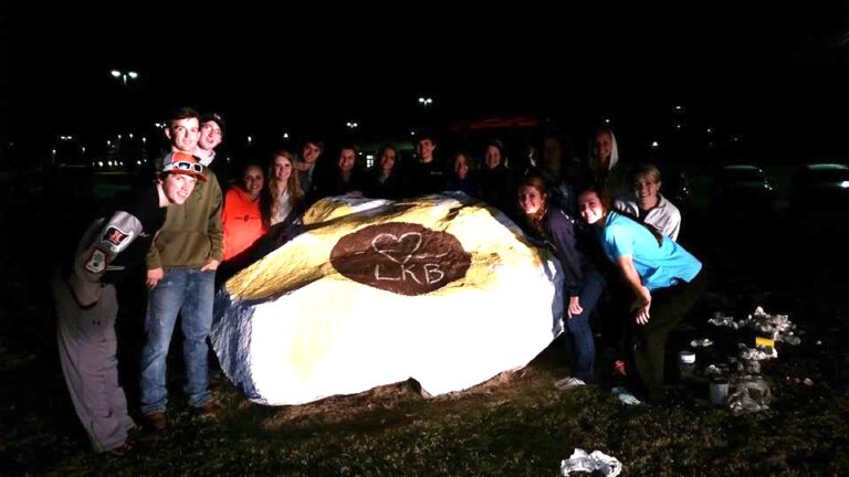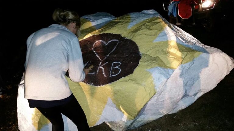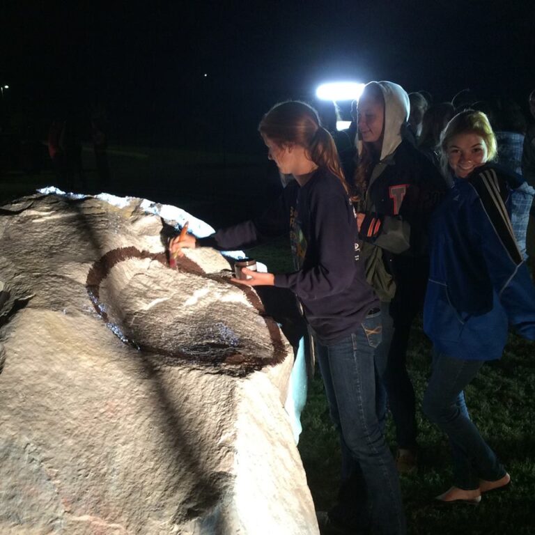 As word of the accident filtered out through the news and social media, students and faculty responded. They joined the Brown family at the hospital to offer support and encouragement. A group of more than a dozen returned home to Habersham late last night to send Lindsey a message. They gathered at ‘the rock’ on the high school campus in Mt. Airy and showed their solidarity by painting it with a flower with her initials in the center surrounded by their handprints. The students also included a Bible verse, Isaiah 40: 29-31: