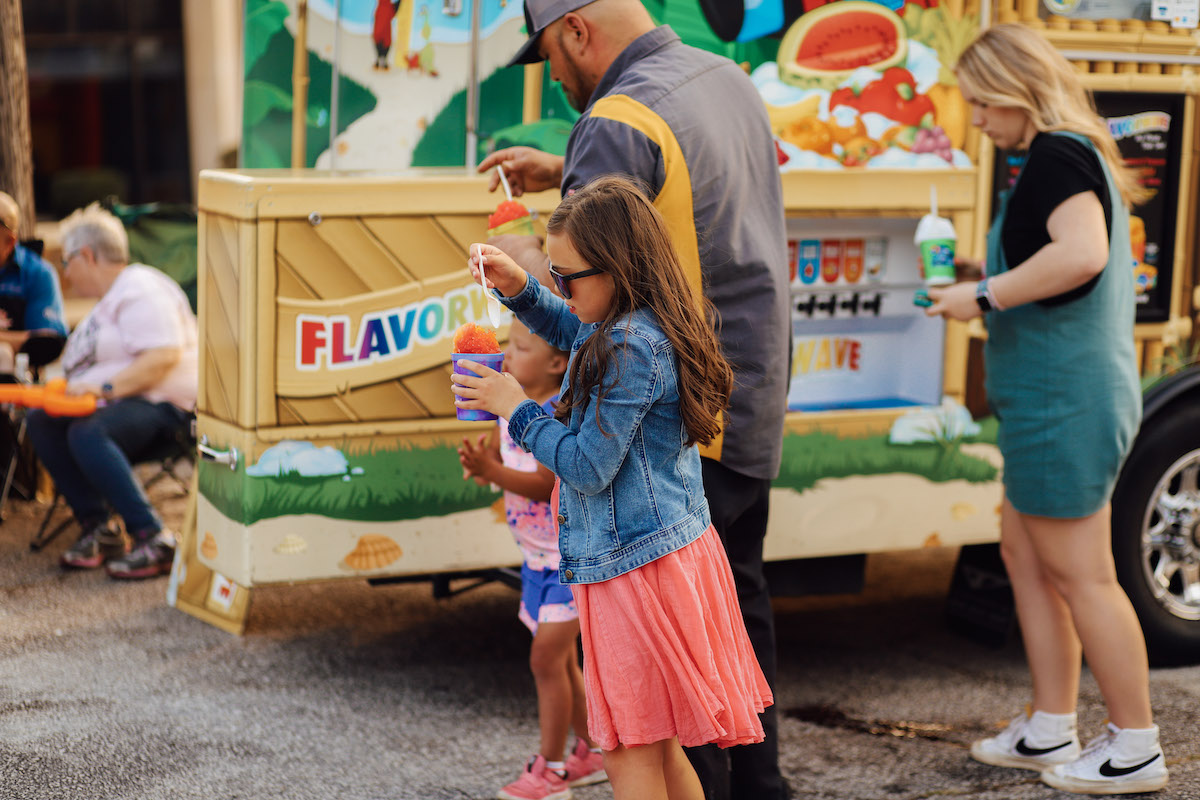 More than 50 vendors are signed up to participate in this month’s event (see below). There will be inflatables and other kids’ activities. Pets are welcome to come stroll with you through the city’s entertainment district.