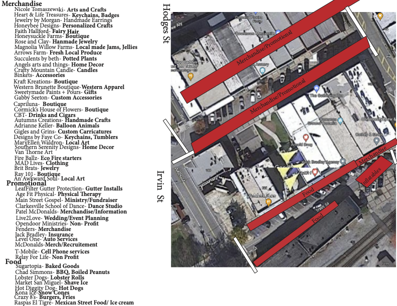 VENDOR LIST AND MAP FOR JULY 27, 2023 (click to enlarge)