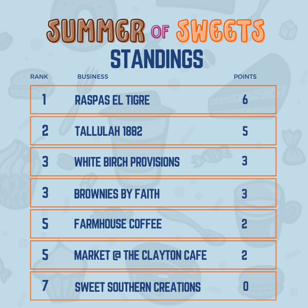 Final results of Now Habersham’s ‘Summer of Sweets’ competition July 6-Aug. 2, 2022.