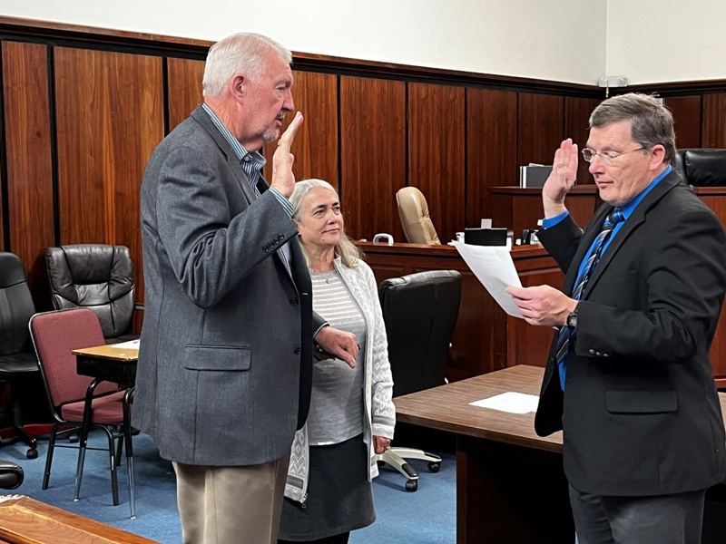During a joint swearing-in ceremony on Thursday, White County Probate Judge Don Ferguson administered the oath of office to Enotah Judicial Circuit Superior Court Judge Raymond George, White County District 2 Commissioner Lyn Holcomb, District 3 Commissioner Edwin Nix, and District 4 Board of Education Member Linda Erbele.