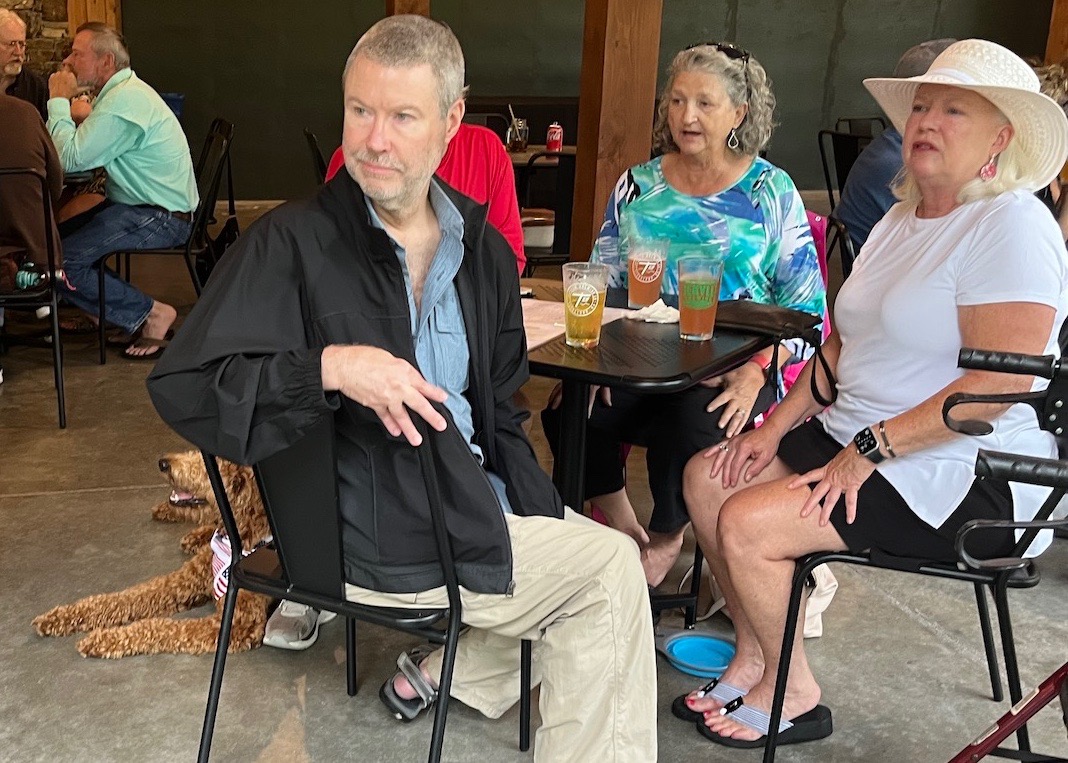 Singer and guitarist J. B. Wolf provided the entertainment. Wolf plays country rock, classic rock, and southern rock, and he kept the music jumping under the pavilion. Tables were packed with dinners, the wait staff were jumping, and even a couple of dogs showed up with their owners.